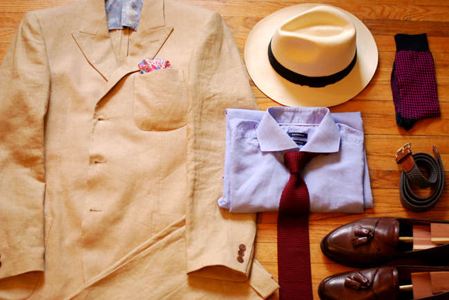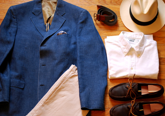 Where I got it: Linen jacket by Ibiza (found on eBay), shirt and pants from Brooks Brothers, boat shoes from L.L.Bean