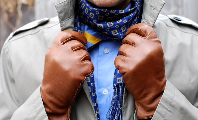 Gloves and scarves, apart from being wonderfully practical and warming, can also add dash and elegance to an outfit. So when it starts to warm up, I don’t like to immediately lose that option. Pictured above are my very lightly lined leather gloves and lightweight silk scarf. They will do an adequate job of keeping my hands and neck warm if it’s breezy, but also won’t burst my pockets when it warms up and I have to take them off.