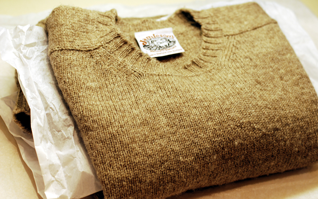 Many quality sweaters need and should be dry cleaned, but many more do well with a hand wash. This is a simple process: add hand washing soap to a basin, then very cold water, then soak the sweater for a few minutes. Squeeze the water through the sweater a few times, then empty the basin and refill with cold water, squeezing the sweater until no more bubbles appear in the water. This may take 3 or 4 sink-fulls of fresh water. Never wring or twist the sweater. Once all the soap is gone, squeeze out as much water as you can then roll the wet sweater up in a dry, clean towel and press down hard. Lay the sweater out on a new towel until dry. This is by far the most time consuming part of the seasonal swap from winter to summer as each sweater can take a day or more to dry and depending on how many towels and open spaces you have, it may take a week. But rest assured, next fall they will emerge from storage clean and happy and ready to wear.