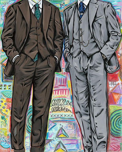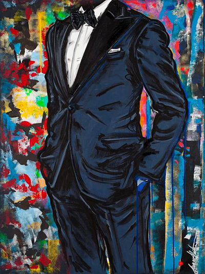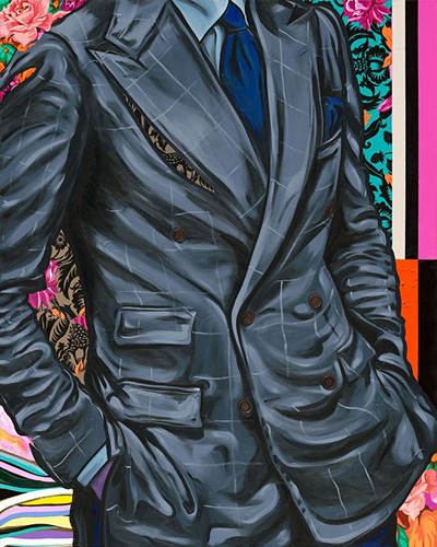 The other thing that occurred to me as I studied Samara’s work was the symbolism of it all. The suit can be a very charged object, often entangled in our concepts of masculinity and even patriarchy. For Samara, there is certainly a fascination with what the suit means and represents, but she doesn’t have a “statement” about her work. Instead, while she uses her paintings to express her feelings about character, gender, hard work, traditions and individuality, she’d rather people take from her work whatever they wish.