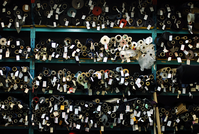 While Sultan mostly sells direct to the garment industry here in Toronto and around the world, he is seeing an increase of walk-ins, men looking to pick their own fabric for custom suits and shirts. Doing this means getting a much better idea of the look and feel of the fabric than from just a tiny sample at a tailor’s shop. You also save a fair bit of money. However, most guys would not know where to start faced with Sultan’s massive selection. You may want a blue shirt, but what precise shade, weave, weight, and so on? And while Sultan is not a tailor, he has a remarkable amount of knowledge when it comes to suit and shirt construction – a quick glance at me and he knew exactly how many yards would be required for a three piece suit.